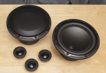 Die Breitbandchassis werden auf dem Armaturentbrett montiert. Die Tieftöner werden in die vorderen Türen eingebaut Das DRC (Steuereinheit für den DSP) wird in dem CD-Fach eingebaut |