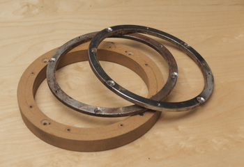 Stahlringe und ein MDF-Ring als Ausgangsmaterial für den Anpaßring |